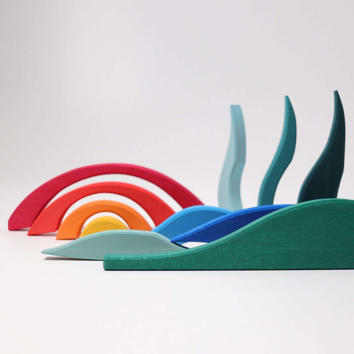 With the exceptional shapes of the landscape building blocks, children can create flowing landscapes, with hills and mountains, water and trees as well as houses and caves.